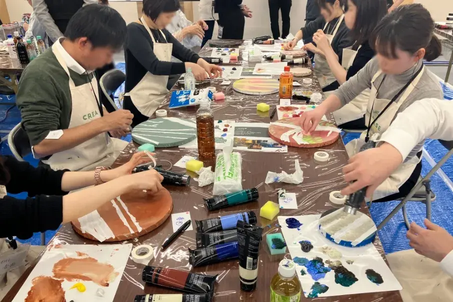 オフィスの施工中と竣工後に、社員の皆様を対象とした計2回のワークショップを開催しました。ワークショップでは、皆様と力を合わせて「森の四季」をテーマにした丸太のパネルアートを制作。同僚たちとわいわいアートをつくるなかで、新オフィスに対して前向きな気持ちを抱いていただけるよう注力しました。アートを飾った10階の「CENTER LIVING」に訪れるたび、当時の気持ちを思い出していただけたら嬉しいです。